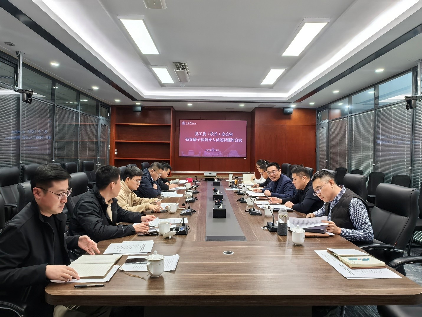 2026年1月5日,党工委(校长)办公室召开领导班子和领导人员述职测评暨2025年度教职工考核会议,青岛校区党工委副书记兼党工委(校长)办公室主任张海波主持会议。